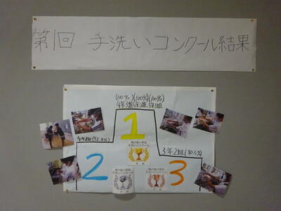 小学校の保健委員会主催の「第1回手洗いコンクール」。登校後の教室に入る前の手洗い率で4日間をカウントしました。昨日(27日)のお昼の放送で結果の発表がありました。