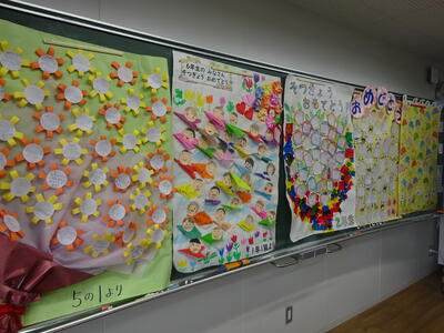 各学年、工夫されたメッセージカードとなっていて6年生を楽しませてくれています。これらの各学年からのメッセージは23日(水)の卒業式場にも飾られ彩りを添えてくれることになっています。