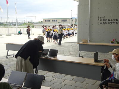 タブレットを配付していない1年生のみ、今回は屋外での授業参観(あさがおの種うえ)でしたが、兄姉がおられる保護者の方々はタブレットを片手にオンライン授業参観と同時進行の光景も見られ、これまでにない授業参観の様子でした。