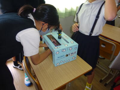 6時間目は委員会活動でした。保健委員会では、保健委員の子ども達が廊下の手洗い場で、必死になって手洗いに集中していました。先日、保健委員会で「手洗いコンクール」を実施しましたが、きちんと手洗いができていたのかを保健委員自ら検証していました。「まずは保健委員の手元?」からと、実際に手洗いをして、しっかり除菌できたのかを特殊なクリームを手に塗り、ブルーラートを当てて見ていきます。「えー」「まだ!ある-!!」と汚れが落ちにくい箇所をチェックしながら、何度も手洗いに挑戦していました。