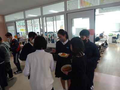 今日の給食メニューの一つは、子ども達に人気の「あげパン」でした。給食準備の後半には、各階から「最初はグー・・・」と残ったあげパン争奪戦の大ジャンケン大会の声が聞こえてきます。