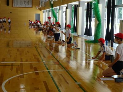 各種目では、一つ一つやり方を教えたり、実際にやって見せたりして、1年生に教えてくれました。また、6年生のお兄ちゃん、お姉ちゃんがやっている姿を見て、1年生はそのすごさを感じていたようです。