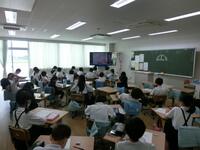 次に4年生は、分度器で角度を測る学習でした。先生が電子黒板を使って説明し、それをしっかり聞いて、問題の角度を測ることができていました。慣れないうちは、分度器の操作が難しいようですね。