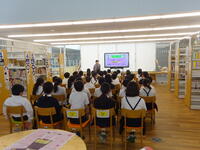 この時期、図書室では年度はじめのオリエンテーションがあっています。本の借り方や、図書室での過ごし方など司書の堀田先生が説明をしてくださっています。小学校・中学校一緒に使う図書室です。きまりを守って今年もたくさん本を読んで欲しいです(教頭 米澤)