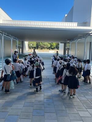 2年生校外学習(西合志図書館、合志マンガミュージアム)へ出発