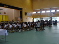 今日は新入生歓迎会を行いました。まずは全校児童が体育館に集まり、全校でじゃんけんゲームや〇×クイズを行いました。今日は「じゃんけん大魔王」も登場しました。感心したのは、体育館に入場するときどの学級でも上靴をそこを合わせてきれいに並べていたことです。小さいことですがこういう習慣が大切だと思っています。集会の後は、みんな校内の芝生のところでお弁当を食べました。