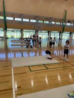 1年生の「マットを使った運動遊び」です。低学年では、「~遊び」という運動の領域があり、「マットを使った運動遊び」もその1つです。本日は、「ゆりかご」や「前転がり」をしました。神経系の発達による動作の獲得は、7,8歳がピークとなります。今の時期に、前に転がったり、後ろに転がったり、かえるの足打ち、かえるの逆立ち、ブリッジなどができていると、今後の中学年や高学年時の「マット運動」で技がスムーズにできるようになります。お家で転がったり、逆さになったりできる場所がありましたら、遊び感覚で楽しんでやると効果的です。(校長 佐藤 政臣)
