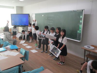 2年生は、生活科で学んだことを発表します。本日は、その練習をがんばっていました。「校長先生、見てください!」と言われて教室へ・・・。みんな真剣に取り組んでいました。