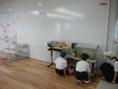 休み時間には金魚の赤ちゃんの成長を楽しみに子どもたちも見に来ています。