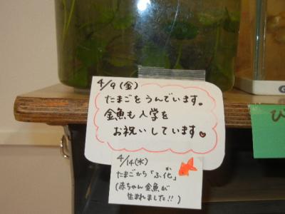 先日、金魚を見ていた中学生に「入学式の日に生まれた赤ちゃんだよ」と伝えるたら「わー生まれてきてくれてありがとう!」と金魚に話しかけてくれた純粋な中学生がいたとうれしそうに久末先生が話してくれました。