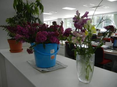 合志楓の森中学校の渕上佳宏校長先生は、ご自宅で花を育てられ、この時期がとても花が咲きほこるそうです。先週に引き続き、早朝からご自宅で作業をしていただき、小学校と中学校にバケツいっぱいの花を届けていただきました。