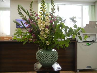 小学校では職員室に飾ったり、担任の先生は早速、教室に持って行かれていました。教室に花があるだけで雰囲気が違います。小学校の校長室にも渕上校長先生が活けていただきました。渕上校長先生の活け方もさすがです。