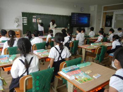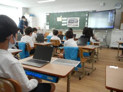 今日は、2年生から6年生までの子どもたちにタブレットの引き渡し式を行いました(感染防止のため各クラスで実施)。これから授業はもちろん、様々な場面でタブレットを活用した活動を行っていくスタートの日です。授業では、各学年に応じて初めてタブレットを活用していました。高学年では、早速、カメラを使いこなしている様子も見られました。