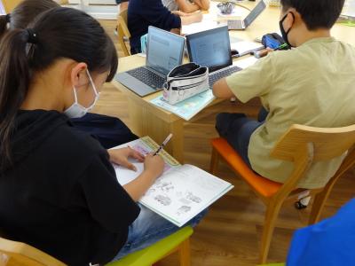 今日は、6年3組が図書室で「調べて整理する」学習を行っていました。各班で設定した「環境問題について」「感染症について」などのテーマについて図書室の本を使って調べていました。基本的な内容については本で調べ、最新のデータなどについては、タブレットを使いインターネットで検索するなど、子どもたちは、本とタブレットをうまく使い分け学習を進めていました。