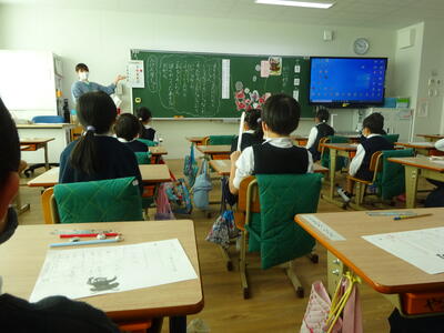 6年生(3クラス)の外国語は、楓の森中の坂本先生が週2時間の授業を担当してもらっています。来年、楓の森中学校に入学する6年生にとっては、1年早めに中学校の先生の授業を受けることができています。