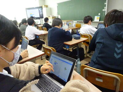 藤井先生からは、一人一台のタブレットが配布されている意義の一つとして、将来、プログラミングができる人が増えることをあげられました。さらに、新しいプログラムを作ることで便利なことが増え、色々な人を幸せにしたり、笑顔にすることができるプログラミンを楽しみながら作ってほしいとも話されました。