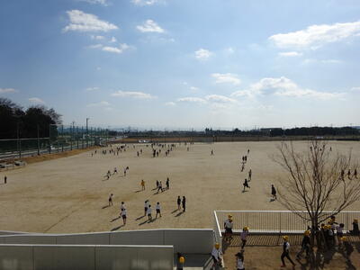 今日の5時間目、2階から運動場を見ると、たくさんの「凧」。1年生の生活科「ふゆをたのしもう」で作った「凧」を2組と3組の子どもたちがあげていました。今日は凧あげ日よりだったようで、糸を全てだしつくすほど数十メートルまで高くあげている子どももいました。楓の森小・中の広い運動場で、思いっきり凧あげを楽しんだようでした。