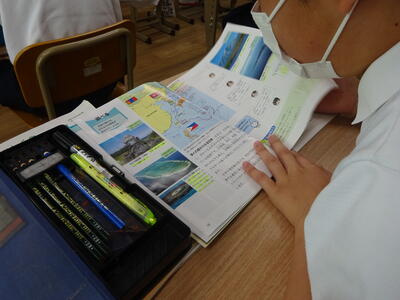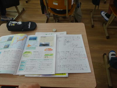 3年生から始まる社会科では、3年生で市町村、4年生で都道府県を学習し、5年生では国や世界の概要について学習をしていきます。今日の5年4組の社会科では、ちょうど我が国の領土についての学習があっていました。領空・領海・領土がどのようなものかを知り、日本の領土の範囲などを学習していきます。その中で、北方領土、尖閣諸島、竹島についても説明が行われていました。6年生や中学校では、さらに歴史的な背景も含めて学習を深めていく内容です。現在進行形の世界での出来事について考えるきっかけになる学習の一つです。