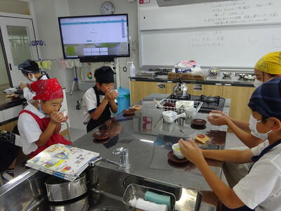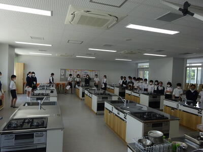 実習では、ミシンを使ったり、調理をしたりなども行い、子ども達にとっては楽しみな授業の一つです。楓の森小は、中学校も一緒のため、小学校にはあまりない「被服室」もあり、もう一つの「調理室」と使い分けながら授業を行うことができます。