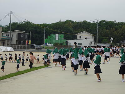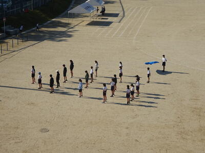 昨年度の運動会は、児童(6年生を除く)も保護者も学年全体の入替で実施しました。そのため、開閉開式は行わず、最初の競技学年だった4年生が「オープニングアクト」(第1回運動会ブログ参照)を学年独自に考えて行ってくれました。