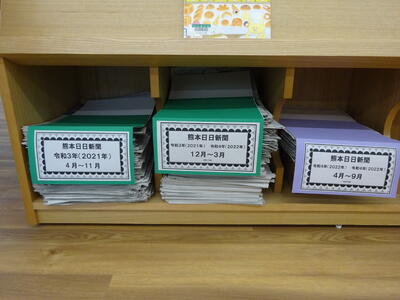 紙媒体の新聞の良さも含めて、学校の図書館には、地元新聞「熊本日日新聞」が置かれています。また、今年から小学生や中学生向けの新聞も図書館におかれています。