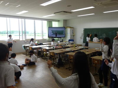 昼休み時間や朝の時間には、電子黒板に桑原先生が踊っている動画を見ながら練習をしている子ども達の姿も見られ、運動会モードになってきています。