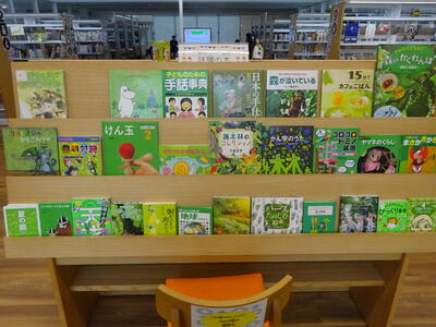 図書室では、授業や季節、行事などに合わせて選書されたコーナーを司書の堀田先生が作られています。子ども達も学習していることや行事、季節にあった選書に思わず手がのびるようです。様々な企画をされる堀田先生ですが、新緑の季節に合わせて「緑」にこだわった選書のコーナーが作られていました。その名も「青々しい季節の青々しい本(単純に緑色の本を集めました)」。なるほど緑の本・・・。これだけあるんだなと驚きですが、新たな切り口で、また違った本にも出会えそうで、ワクワク感が高まります。