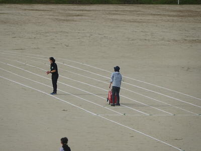 楓の森中の1年生を6年生で担任していた島田先生、後藤先生、宮田先生も休日返上で卒業生の体育大会を楽しみに来られていました。中1の全員リレーとニュースポーツ「アジャタ」をしている卒業生の姿を親が子どもを見るようなまなざしで見つめられていました。