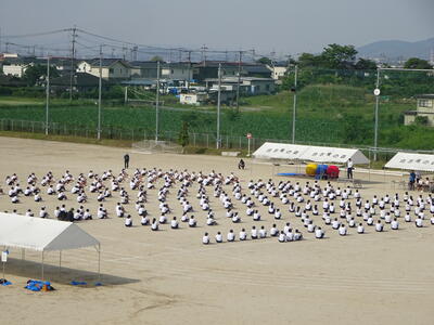 28日(土)の運動会に向けた予行を1時間目から3時間目に行いました。昨年は、学年別での開催だったため、全校児童が運動場に一堂に会するのは開校以来初めてとなります。広い運動場に760名ほどが集まった光景は「ザ・運動会」といった感じがします。