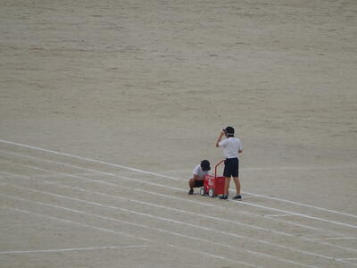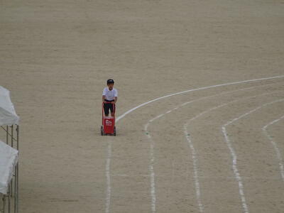 最近は、運動場でラインを引いている子どもの姿が朝のおなじみの光景となっています。運動会に向けて毎日、各学年が運動場で練習をしていますが、練習後は、トラックのセパレートラインはどうしてもうすくなっていきます。そのラインを朝に引いてくれているのが5年生の体育委員のようです。6年生は応援団の練習や団旗の準備のため、5年生が頑張ってくれています。運動会では、競技や演技だけではなく、準備など多くの子ども達が活動をしてくれています。