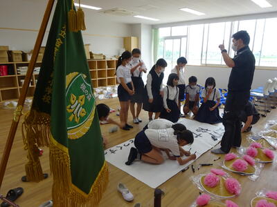今朝は、登校後の小学生が体育館で応援団の練習をしていました。昨年度は、6年生(現中学1年生)のみでの応援団でしたが、今年度は、5・6年生での応援団となります。6年生にとっては、初めての応援団で、そして5年生をリードしていくことになります。どのように成長していくか楽しみです。