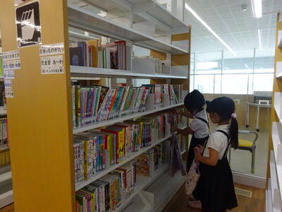 今、生活科で育てている「あさがおのほんをかりたよ」とニコニコ笑顔で話してくれる子どももいて、迷いながらも楽しそうに本選びをしていました。これからの9年間、いろいろな本に出会ってくれればと思います。