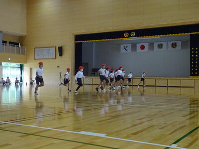 3時間目には、体育館で1年生と6年生が合同でシャトルランを行っていました。
