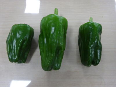 2年生が生活科の学習としてプランターで育てたピーマンを収穫。収穫したのは数個ですが、2年部の先生が栄養教諭の橋本先生にお願いして、今日の給食のサラダに食材として使ってもらいました。ピーマンの量?!も限られているため、もちろん2年生限定です。一切れですがプレミアなピーマンで味も違って感じられたかもしれません。