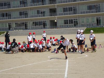 昨日(2日)の5・6時間目にスポーツテストが行われました。8種目のうち、握力、20mシャトルラン、50m走は各クラスや学年で実施し、昨日(2日)は、5種目(立ち幅跳び、上体起こし、反復横跳び、長座体前屈、ソフトボール投げ)を5班に分けて実施しました。5年生は1年生を、6年生は2年生をサポートしながら活動してくれたようです。