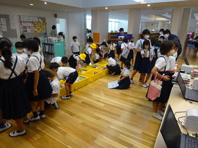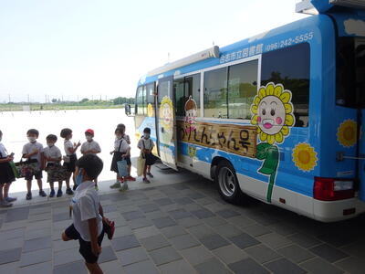 昨日(2日)に合志図書館の移動図書「どんちゃん号」が昼休みにやってきました。学校の図書室にはない書籍もいっぱいあり、定期的などんちゃん号は、子ども達も楽しみにしているようで、昨日もロビーは大賑わいだったようです。今回、借りた本は、学校の昇降口にある合志市図書館の返却BOXで返却もできます。