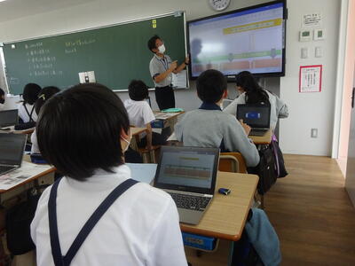 タブレットが配付されていない(先週に配布済み)1年生を除いて、学級閉鎖のクラスはオンライン授業の対応を取っています。オンライン授業も高学年では、チャット機能でのやりとりやteamsでの資料等の共有、画面共有などを駆使して授業が進められています。さらに、3~4人のグループに分かれてオンライン班活動など、オンライン授業も進化をしています。先生方も一方的なオンラインとならないように機能を使って、双方向の授業づくりを心がけてオンライン授業用に授業を組み立てなおすなど準備を丁寧に行っています。
