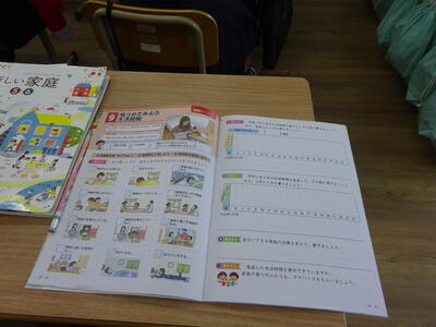 などの項目をそれぞれが確認しながら、自分の生活を振り返り、生活時間を計画していく学習です。家庭の仕事では「ご飯をたく」「洗濯物をたたむ」「お風呂掃除」「夕食の配膳」など自分にできることをしっかりとやっているなという印象を持ちました。友だちの発表を聞いて「それならできる」とやる気になった子どももいたようです。