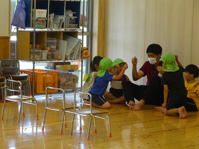 本校の木庭先生、楓の森中の井上先生、松本先生の3人が国区内にあるひかりの丘保育園で実習を行いました。園児達と一緒に体を動かしたりして活動をしていました。この研修で、いつも関わっている小中学生とは違った視点での学びもあるのではと思います。