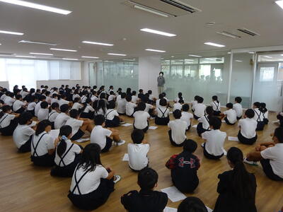 今日の1時間目は、平和集会に向けての思いを共有しながら学年全体での学びを深めていました。