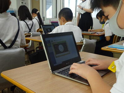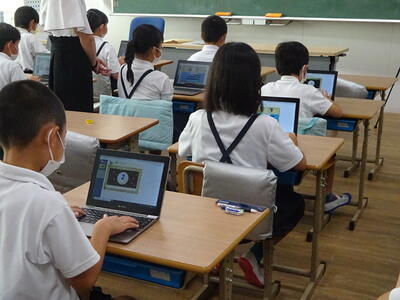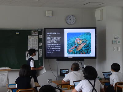 総合的な学習の時間で、5年生は水俣学習を行ってきています。学習の中で環境問題について、子どもたちがそれぞれのテーマで調べ学習を進めてきました。現在、調べたことをタブレットでプレゼンとしてまとめ、クラス内で発表しています。4年生の時から、タブレットでプレゼンを作成することは何度か経験していますが、5年生になり、プレゼンの枚数も増え、内容もさらに充実していていました。今日は、5年1組で発表があっていましたが、体験談なども交えた発表も盛り込むなど、より説得力のあるものに仕上がっている子どももいて驚かされました。