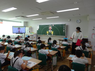 2年生の三城先生は「自分を好きになる」という主題で、「どうして うまくいかないのかな」を教材にした授業でした。うまくいかなかった時の主人公が自分を好きになる気持ちの変化を考えながら、友達のよさや自分のよさに気づく大切さを一緒に考えていきました。