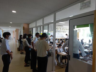 毎回、小学生にも事前紹介されており、今回も6年生2名が中学生の中に混じって、3級(中学3年生程度)を受検していました。英語検定は、各中学校で実施されていますが、本校にとっては、この英語検定も中学校と施設一体型のメリットの一つです。