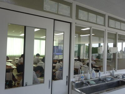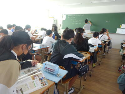 毎回、小学生にも事前紹介されており、今回も6年生2名が中学生の中に混じって、3級(中学3年生程度)を受検していました。英語検定は、各中学校で実施されていますが、本校にとっては、この英語検定も中学校と施設一体型のメリットの一つです。