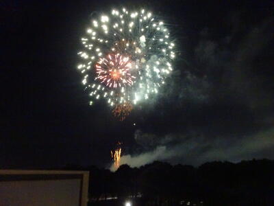 学期末で事務整理で残っていた小・中学校の先生方が、仕事を忘れて・・・まさしく頭上にあがる花火を堪能していました。今年も最後は、自然と拍手がおこりました。菊池恵楓園自治会の皆様、ありがとうございました。