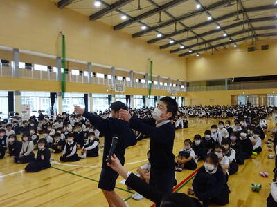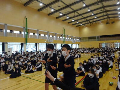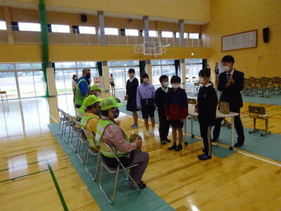 小学校入学から中学校卒業まで、見守りをしていただいた方々の姿を見て、こうした行動をとっている中学生を修了式の校長講話で子ども達にも紹介をしました。