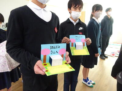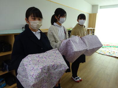 卒業プロジェクトで、地域の方々へ感謝の気持ちを伝えるチームが、地域の見守り隊の方々へのトートバッグを制作しました。今日の1時間目の卒業式練習にあわせて、毎日の登下校を見守っていただいている見守り隊の方々にお越しいただきました。今回は、卒業式に来賓の方々を招待できないため、卒業式で歌う合唱を聴いていただき、制作したトートバッグをお渡ししました。(6年家庭科を教えてもらっている合志楓の森中の小山先生がすてきな生地を見つけてこられ、制作指導もしていただきました。)