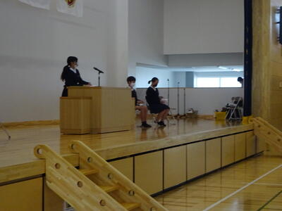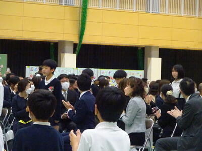 卒業証書授与の後、今年度は、卒業生からのわかれの言葉や合唱なども行うことができ、卒業生の思いを保護者の方々をふくめた式場(5根生はオンライン参加)に参列されている方々に伝えることできました。