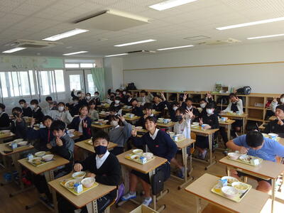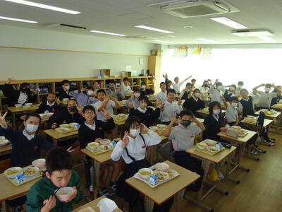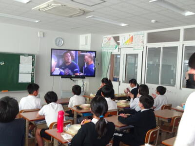 優勝で試合も終了していた給食の時間には、高学年の教室では、特別にダイジェスト版を見ながらの給食となりました。結果が分かっていてもハラハラドキドキしながら、最後には、各教室から思わず拍手が起こっていました。