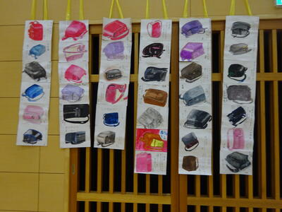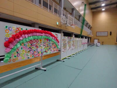 また、式場には、おわかれの会で卒業生に贈られた在校生からのメッセージや卒業生が制作した「将来の自分」や6年間使った「ランドセル」の絵、そして卒業プロジェクトの取組などが掲示され、式前には保護者の方々にもご覧いただくことができました。